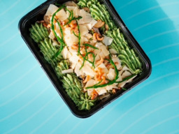 Heerlijke groenterijst met groene asperges en Zalm met een lekkere gekruide pasta!