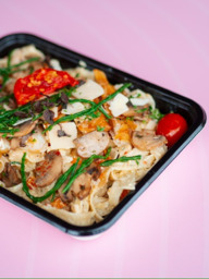 Truffelpasta met huisgerookte Zalm en champignons